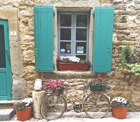 It is tucked away in a lovely little street that runs between what used to be the ramparts of the village and the chateau walls. In fact les Volets Verts is in the back walls of the old chateau. Parts of it are very old,(this is not a new build), so don't be surprised if the floors are not level or if bits stick out? It has been renovated while still respecting many old features.